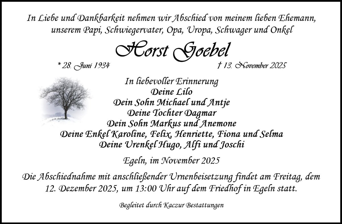 geboren am 28. Juni 1934 in Schwenten gestorben am 13. November 2025 in Egeln